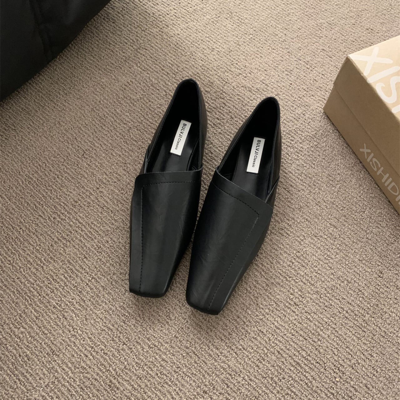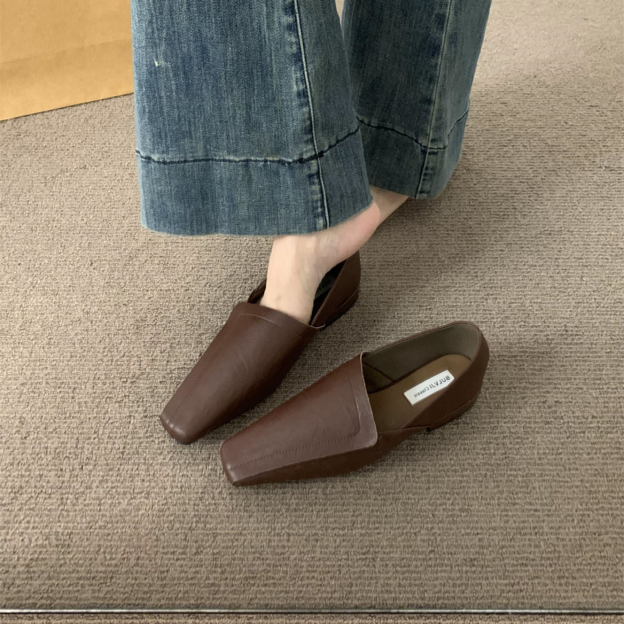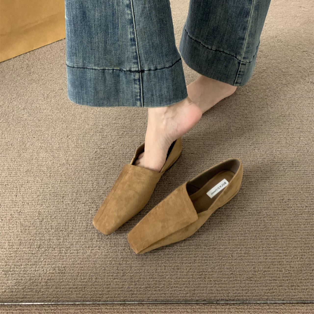 スエード調スクエアトゥフラットシューズ 01039