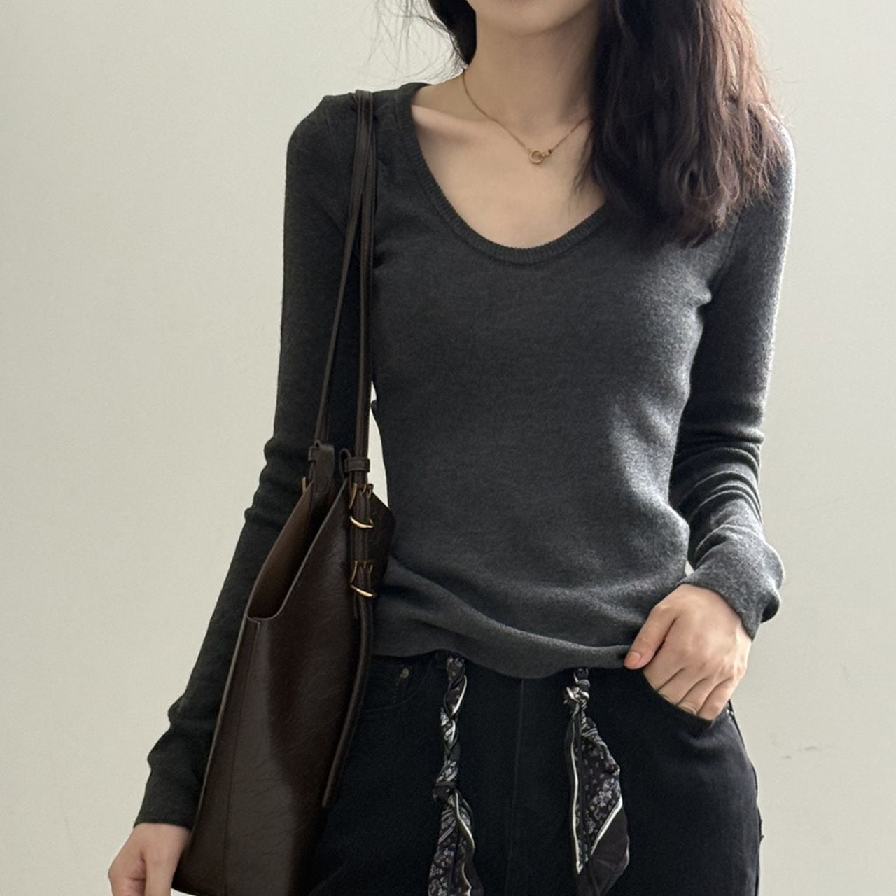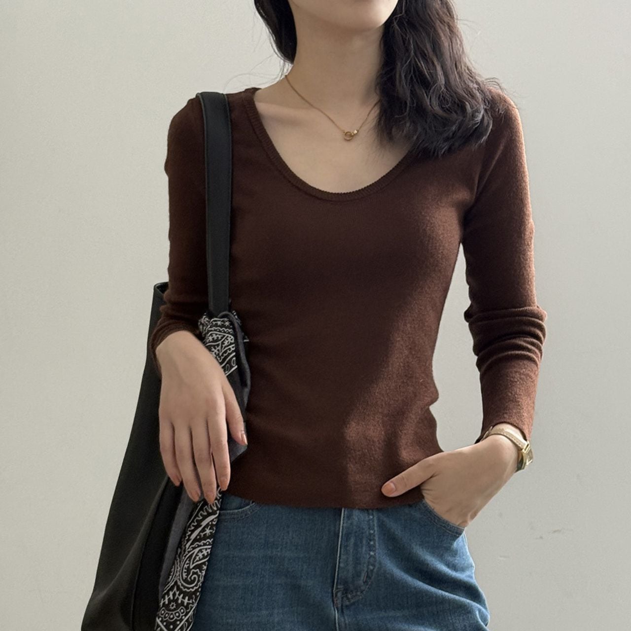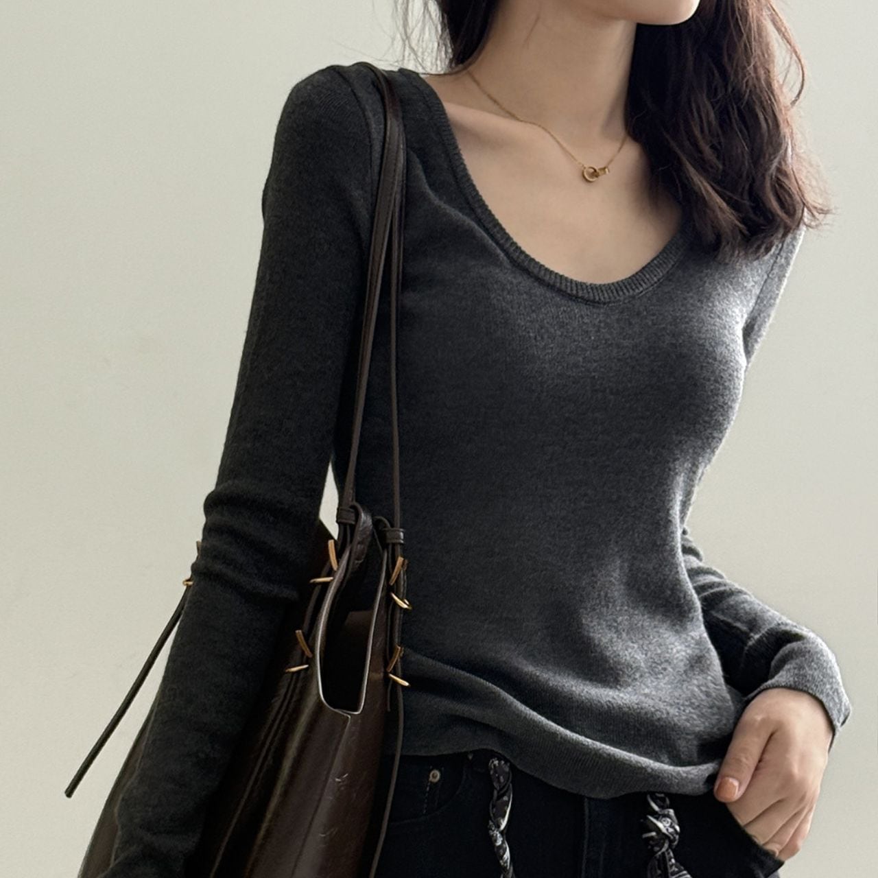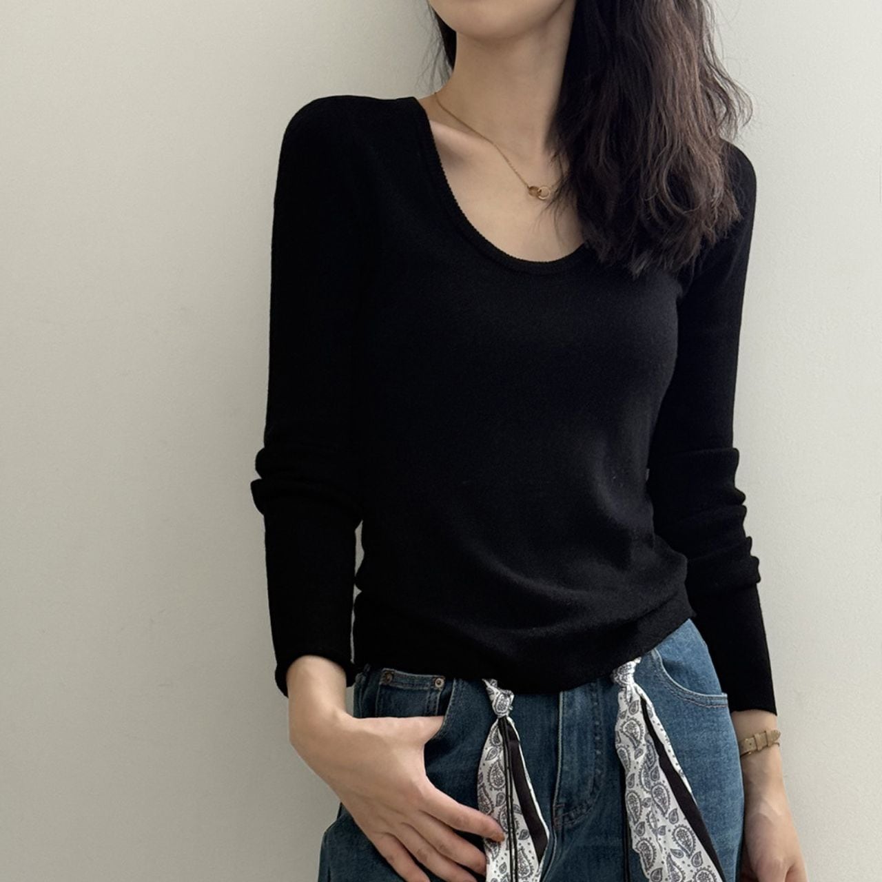 ラウンドネックニットカットソー 01057