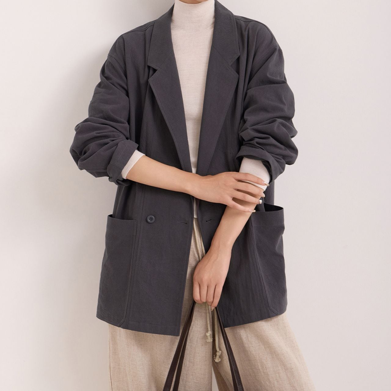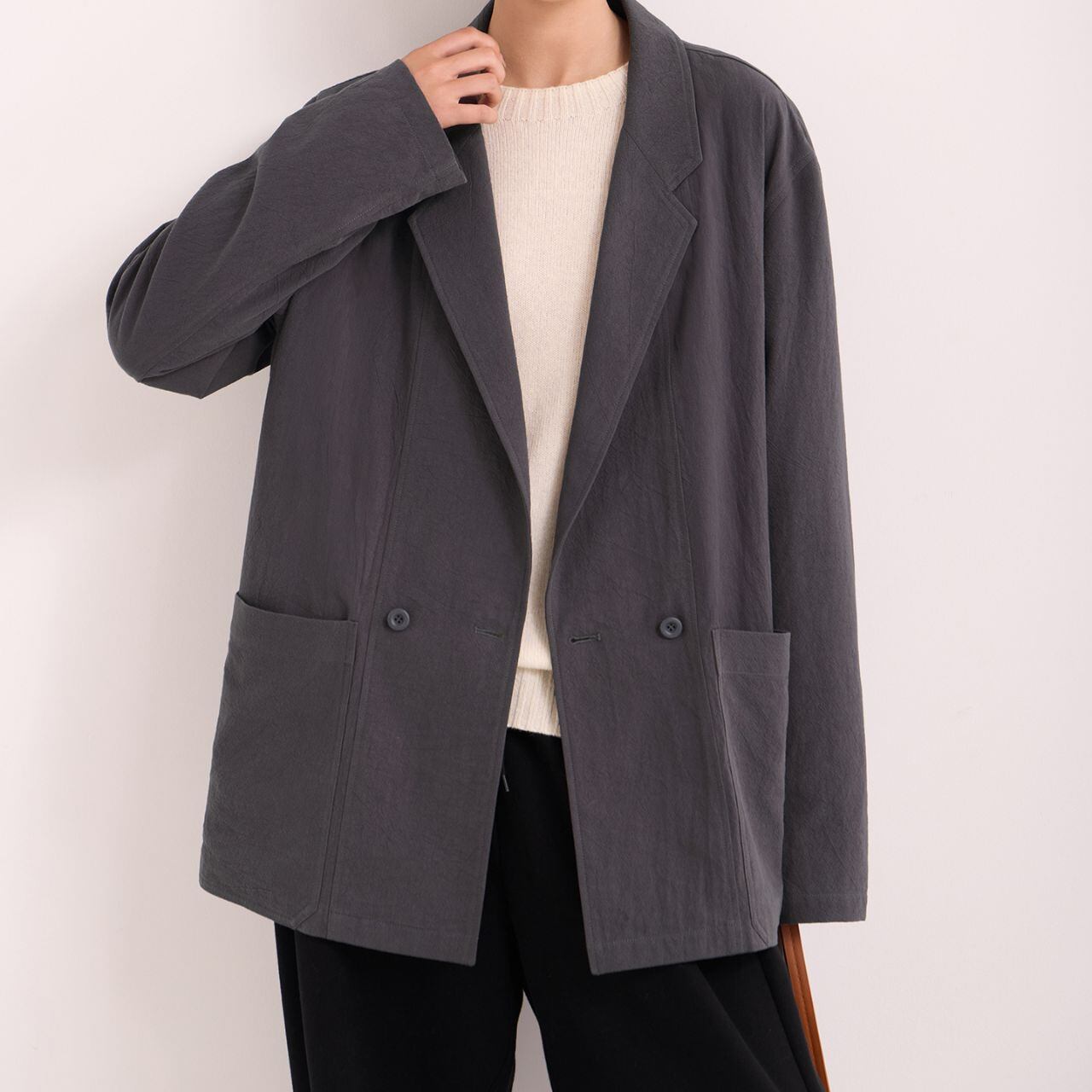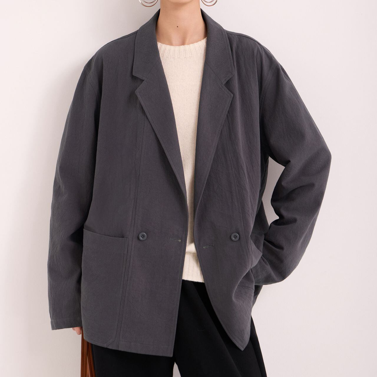 ダブルブレストヒップ丈長袖ジャケット 01093