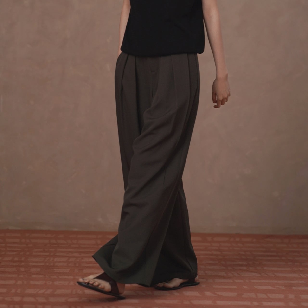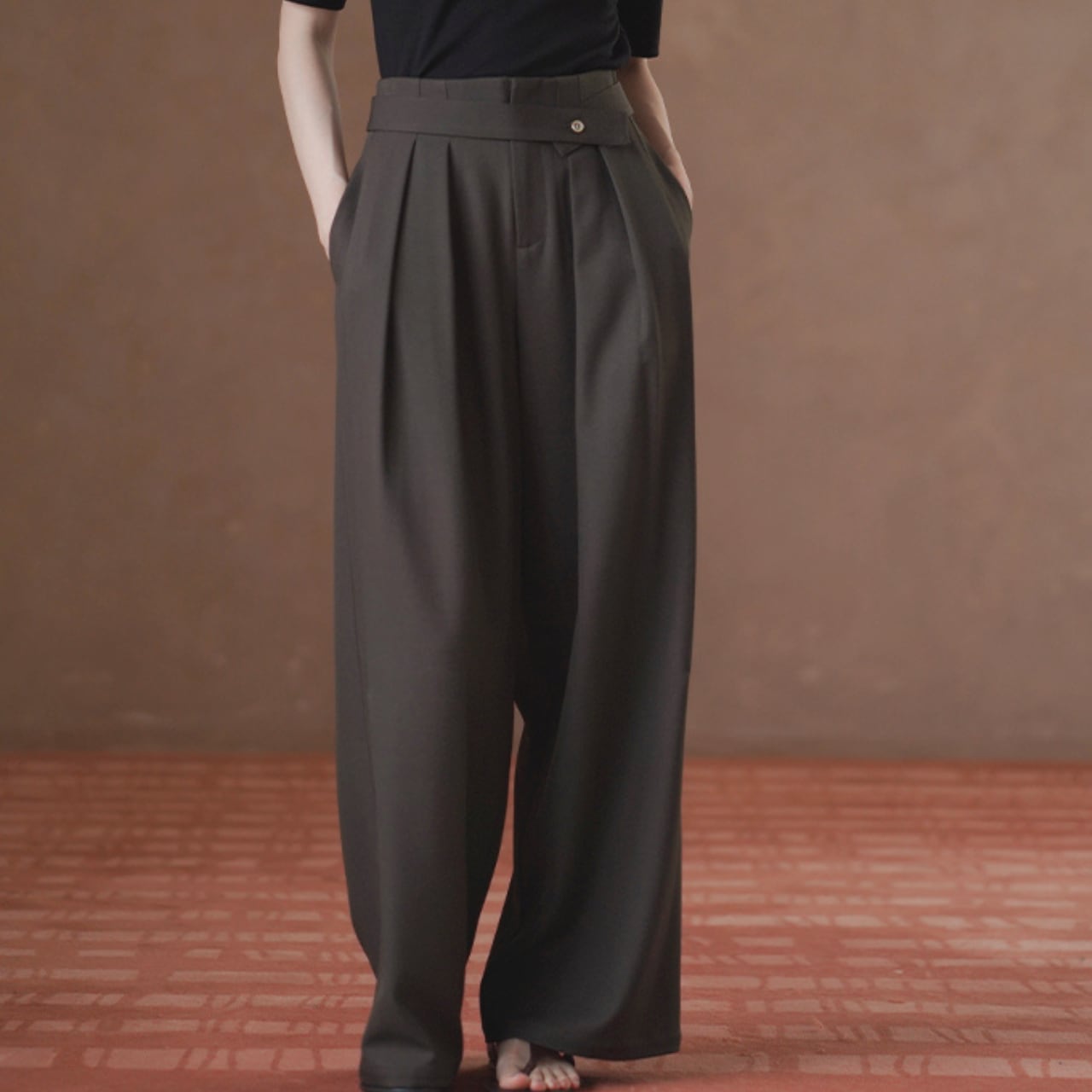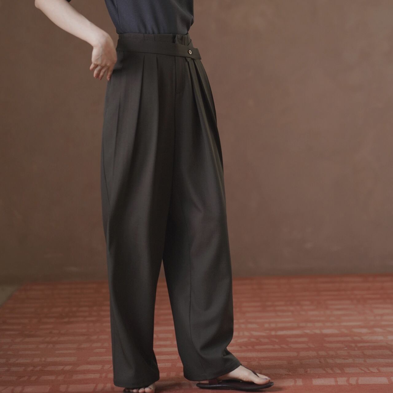 タック入りワイドフルレングス丈パンツ 01153
