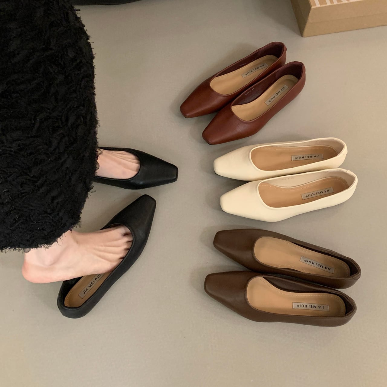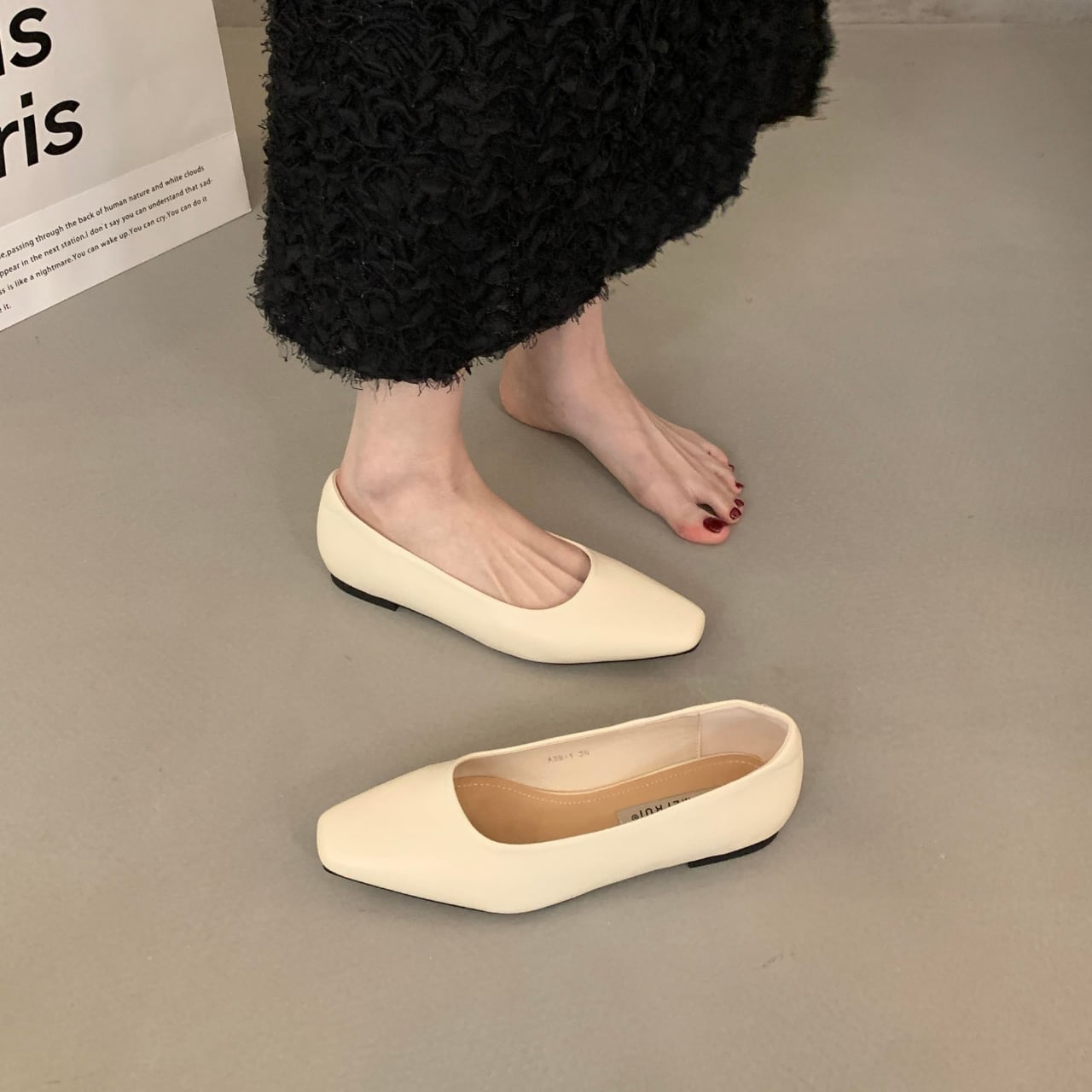 ローヒールポインテッドトゥフラットシューズ 01164