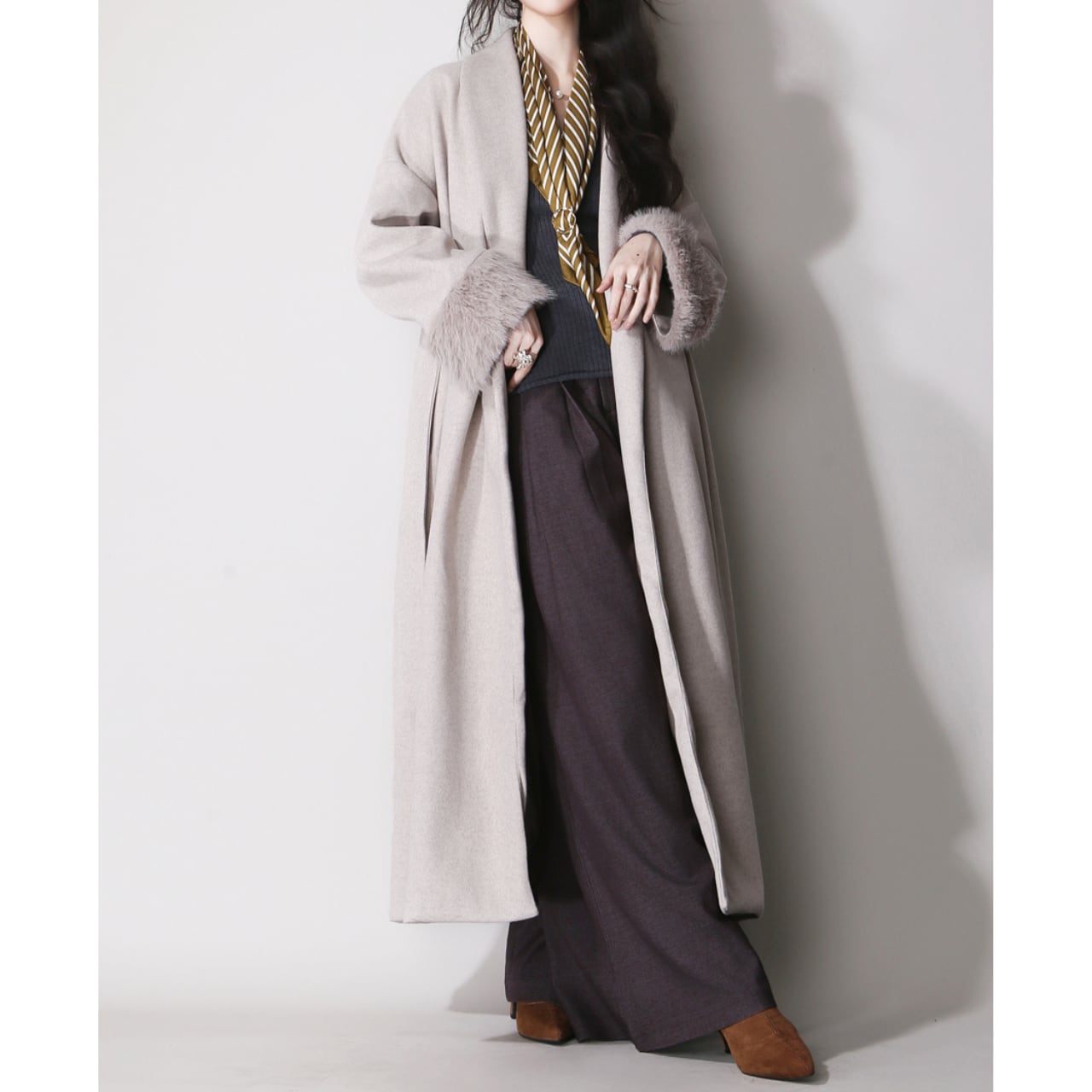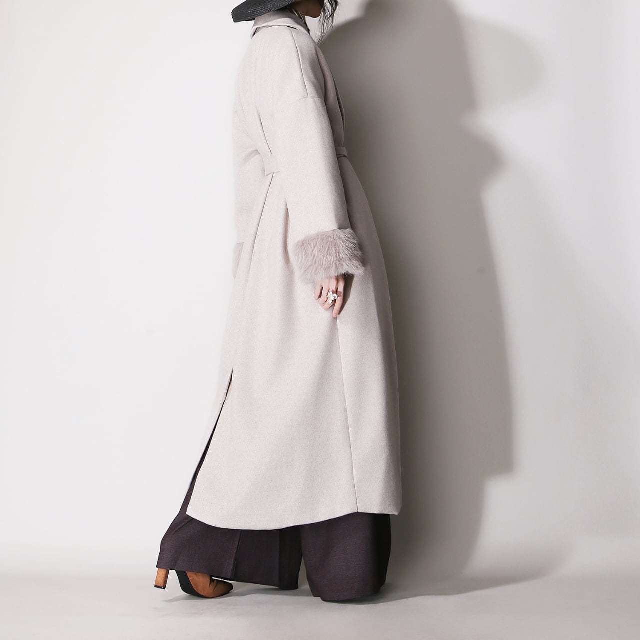 ファーカフスノーカラーコート 01195