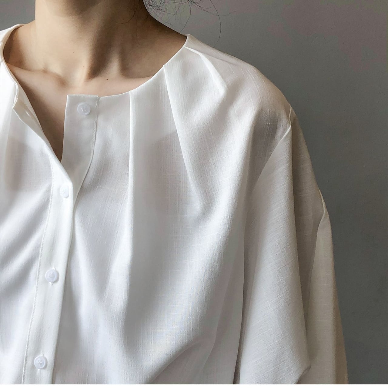 ノーカラーボリュームブラウス 00044