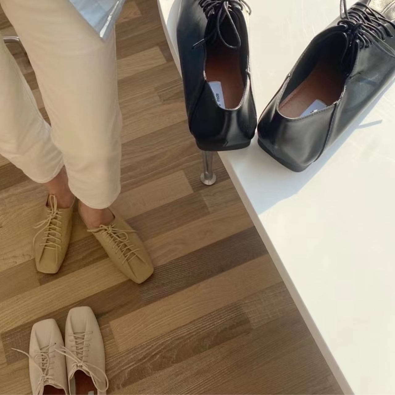 レースアップスクエアトゥシューズ 00079