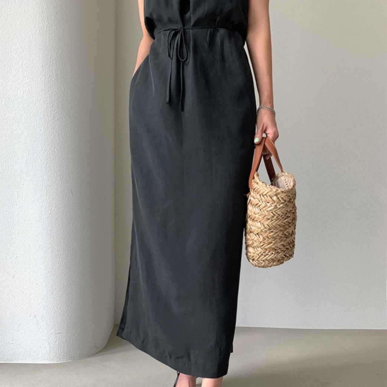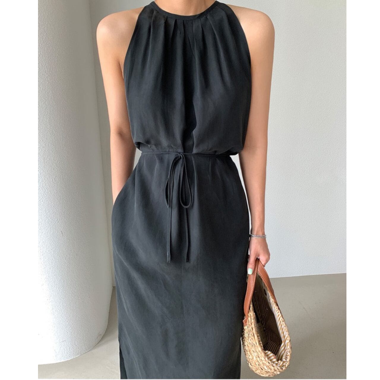 ノースリーブ ウエストリボン ロング丈 ワンピース00081