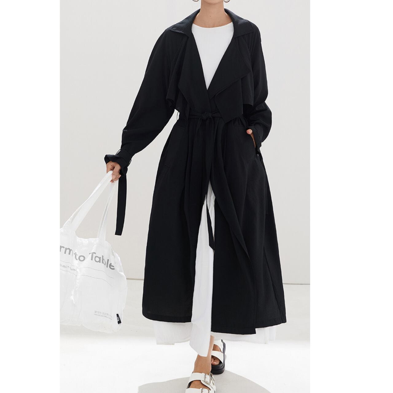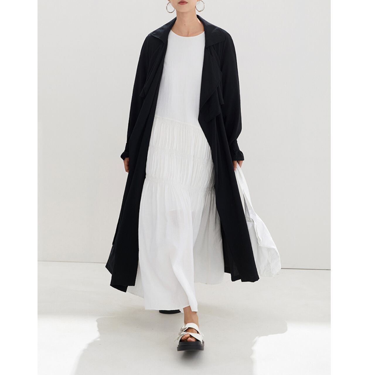 Aラインシルエットロングラップコート 00098