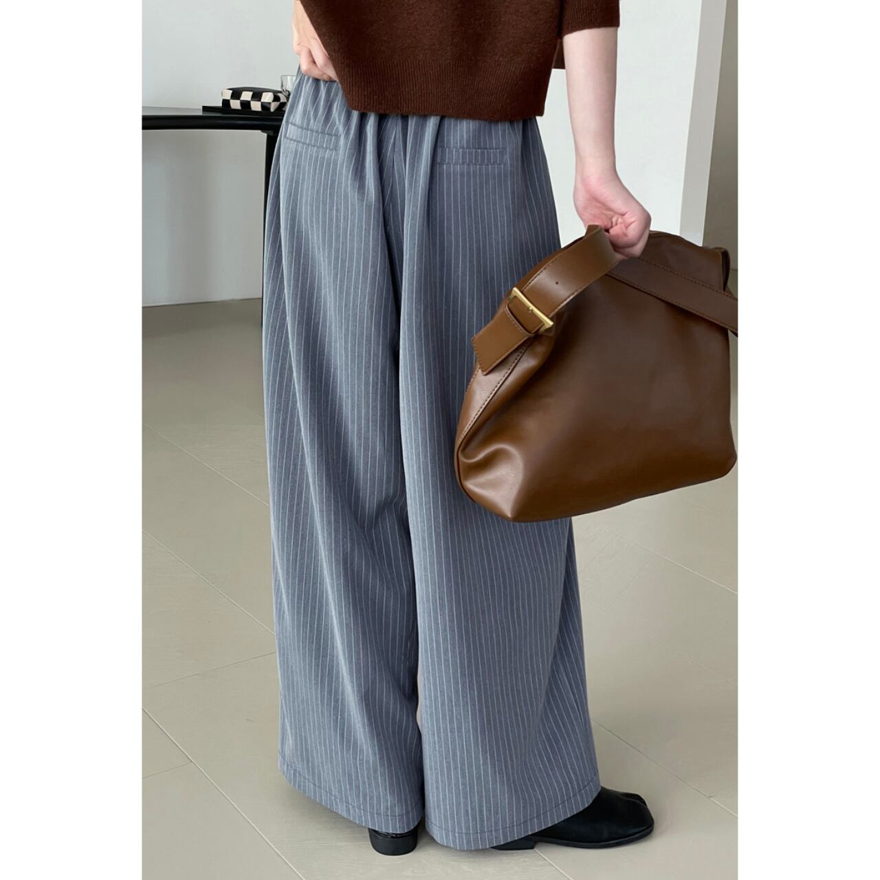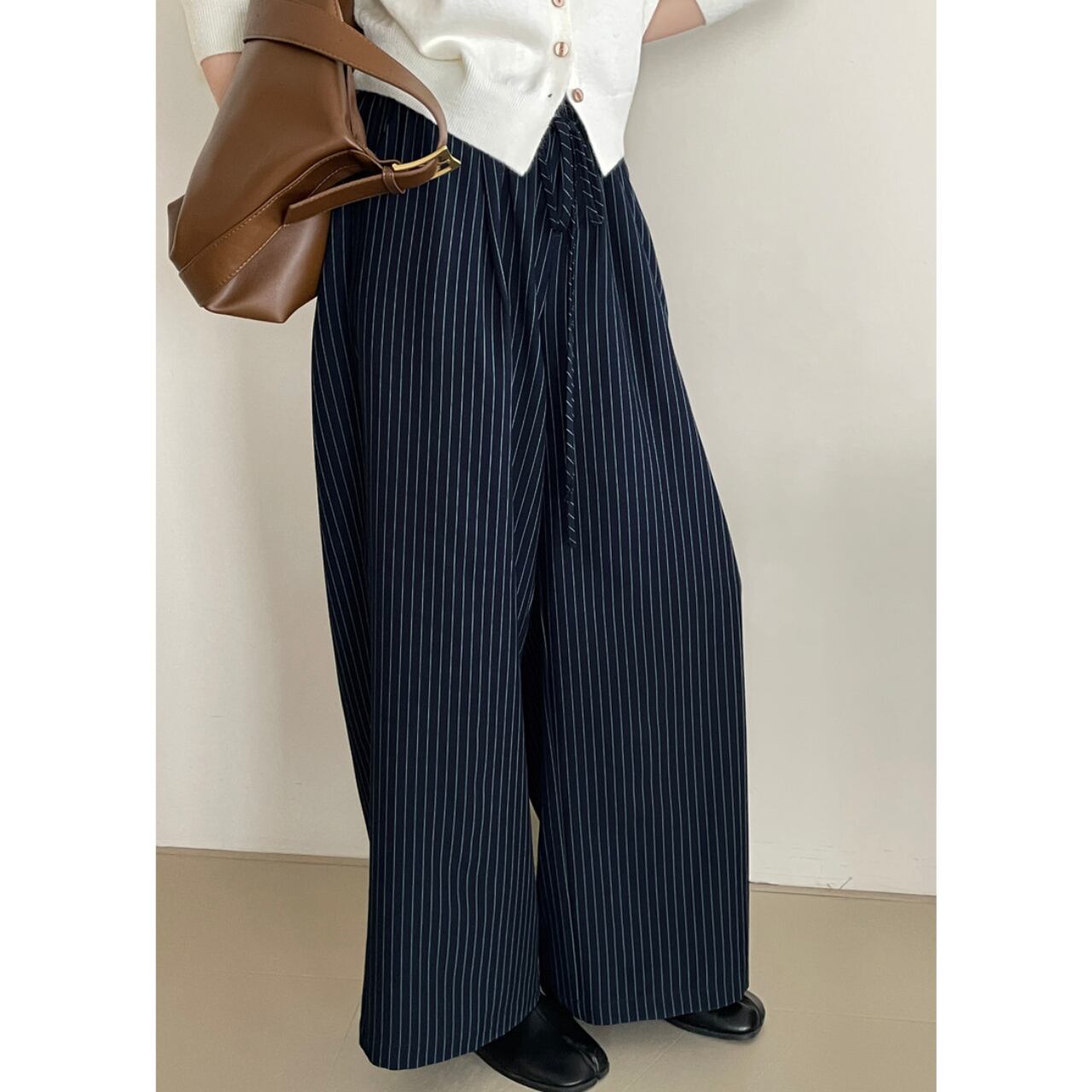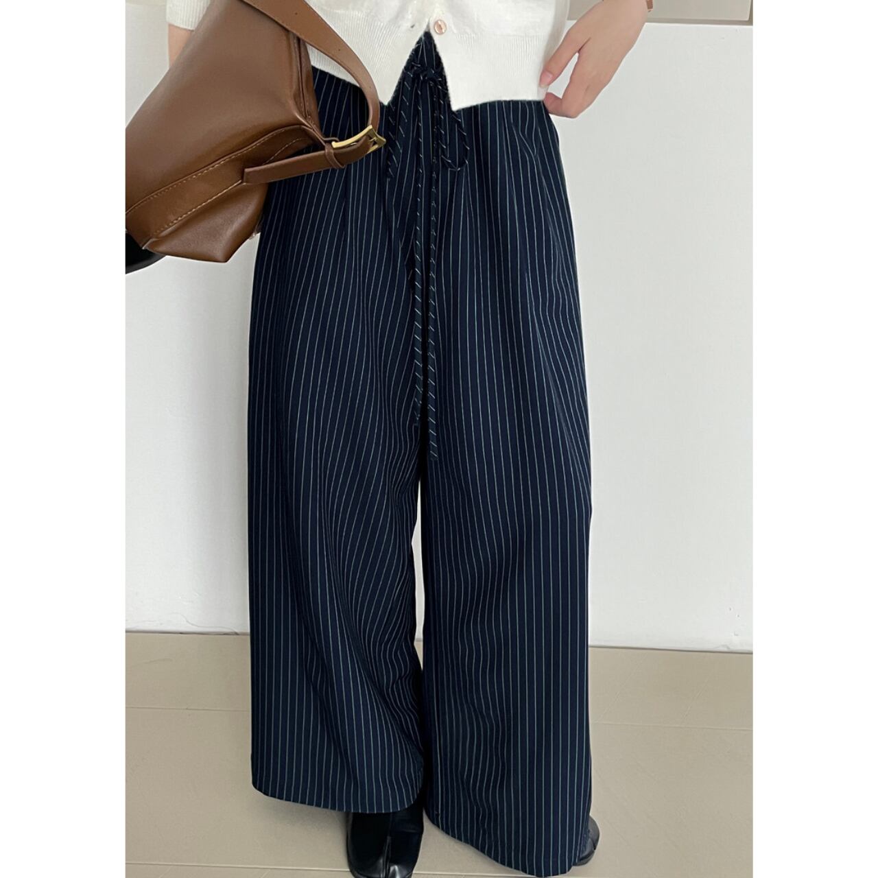 クロップド丈ストライプワイドパンツ 00134