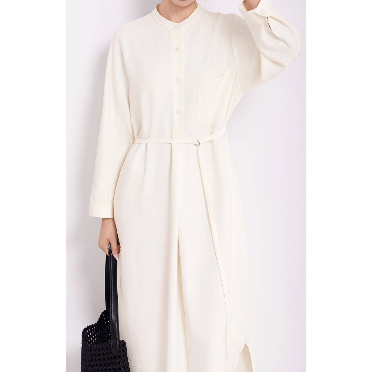 スタンドカラー Aラインシルエットワンピース 0165