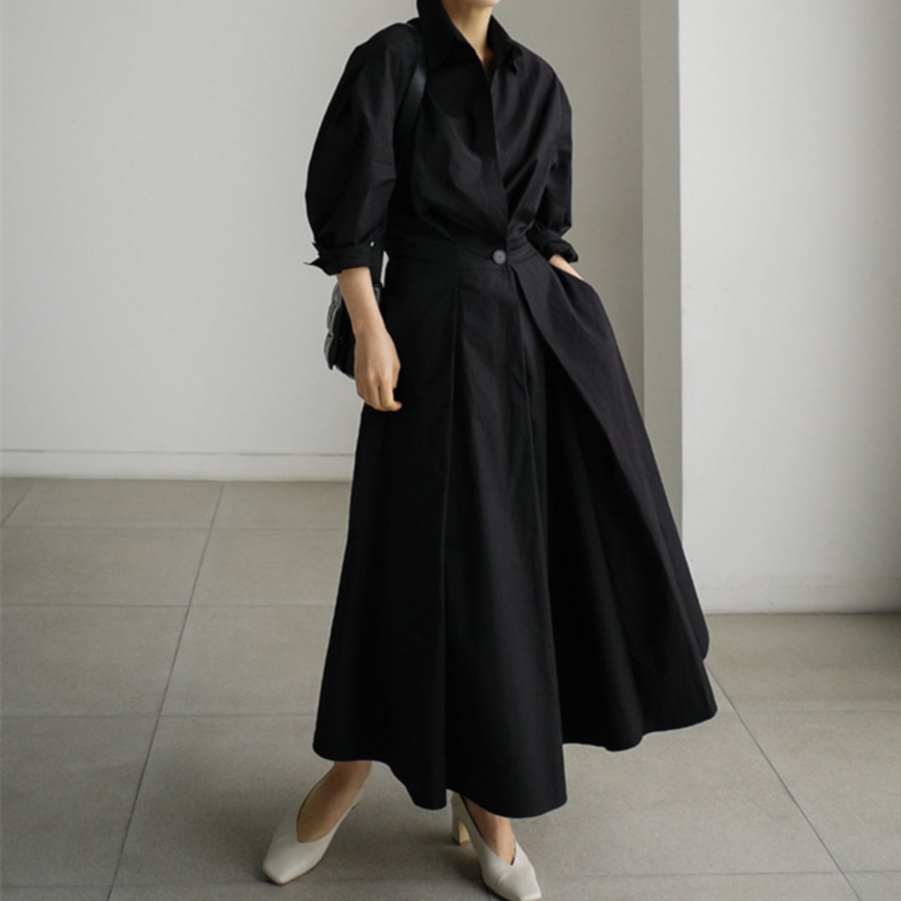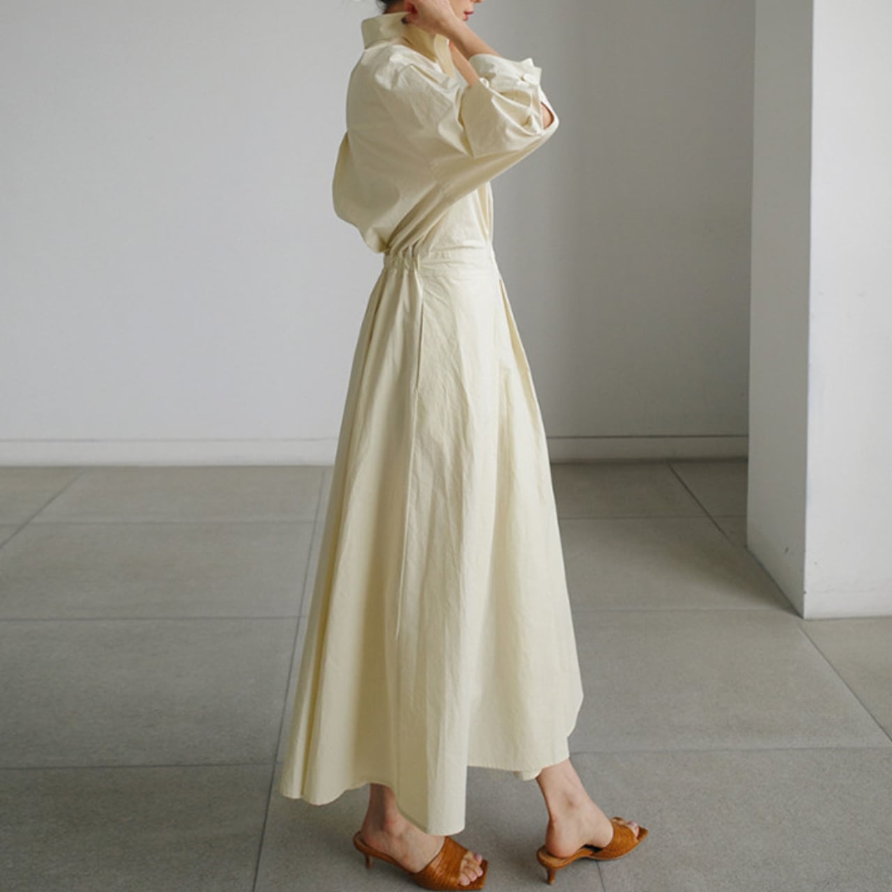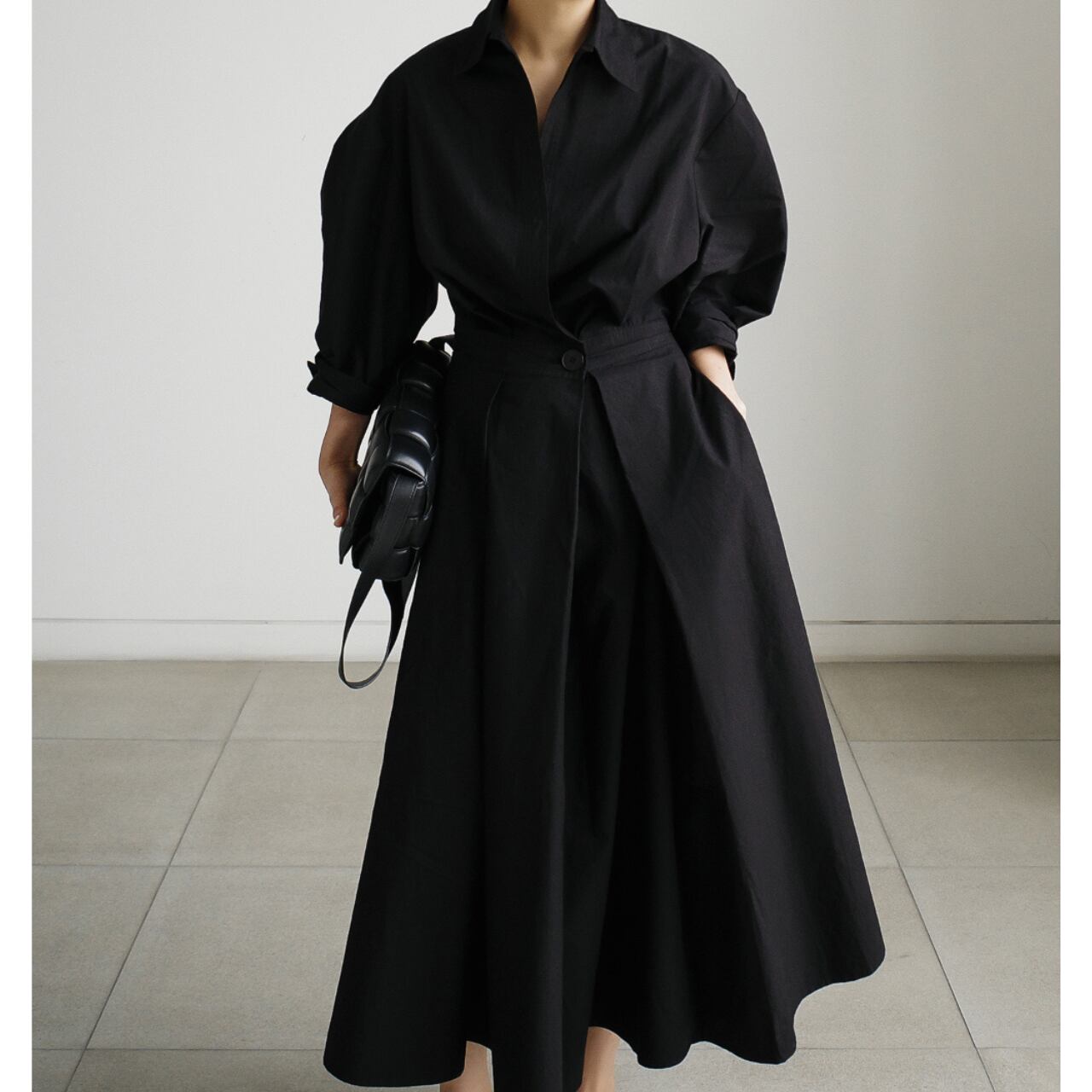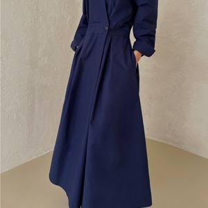 バンドカラー七分袖Aラインシャツワンピース 00222